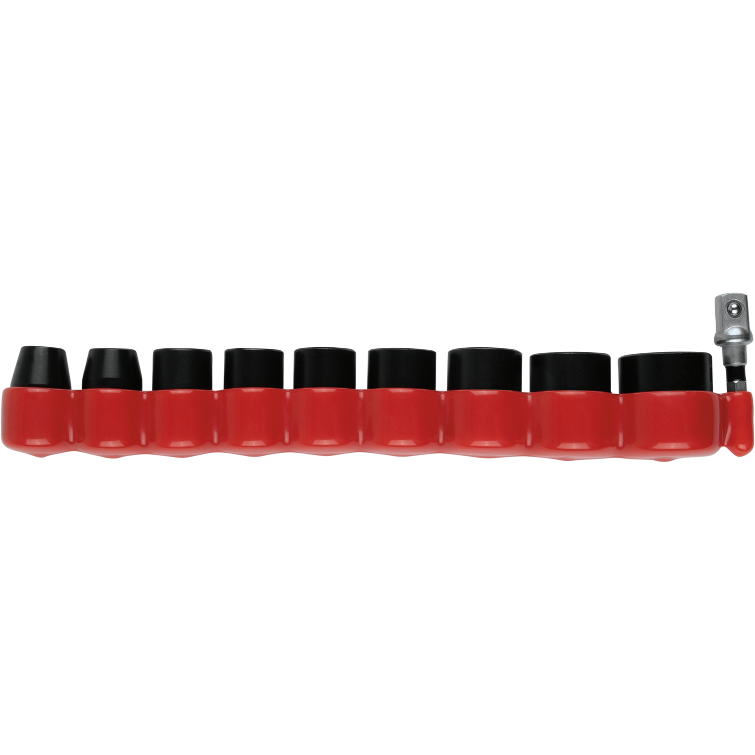 • INCLUDES : 8mm, 10mm, 12mm, 13mm, 14mm, 15mm, 17mm, 18mm, 21mm Impact Sockets and 3/8" Drive x 1/4" Hex Shank Socket Adapter