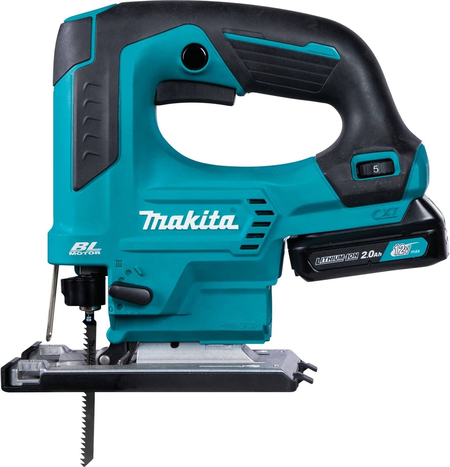 The Makita 12V max CXT® Lithium-Ion Brushless Top Handle Jig Saw Kit (VJ06R1J) delivers fast and efficient cutting, with a compact design that engineered for ease-of-use and maneuverability. The VJ06R1J features a top handle design and is ideal for woodworkers, cabinet makers, remodelers, and general contractors. The kit includes two 12V max CXT® Lithium-Ion slide-style batteries for improved balance and ergonomics over pod-style batteries. For added convenience the batteries include an on-board L.E.D. charge level indicator.