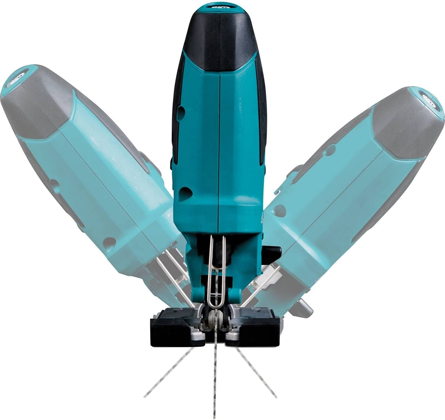 The VJ06R1J has a compact and ergonomic design with less weight (only 4.1 lbs. with 12V max CXT® 2.0Ah battery). The efficient Makita-built brushless motor is engineered for longer run time, increased power and speed, and longer tool life. The variable 5-speed control dial (800-3,000 RPM) enables the user to match the speed to the application, and the 3 orbital settings plus straight cutting provide added versatility. The soft start suppresses start-up reaction for better accuracy, and the no-load speed reduction feature automatically reduces SPM for more accurate cutting starts. Convenience features include “tool-less blade changes, large 2-finger variable speed trigger with lock-on button, dual L.E.D. lights, and a built-in dust blower to clear the line of cut.