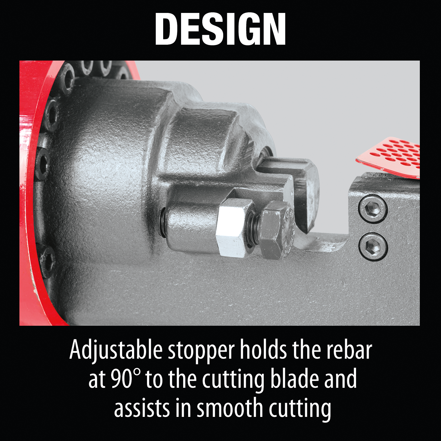 • DESIGN : Adjustable stopper holds the rebar at 90° to the cutting blade and assists in smooth cutting