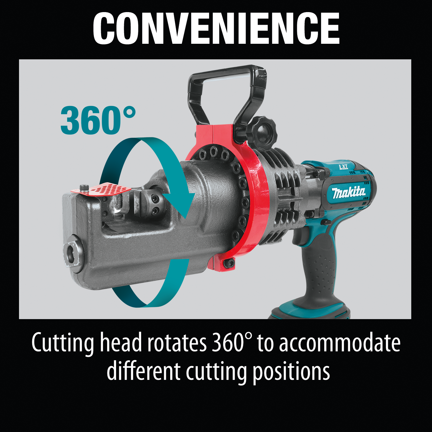 • CONVENIENCE : Cutting head rotates 360° to accommodate different cutting positions