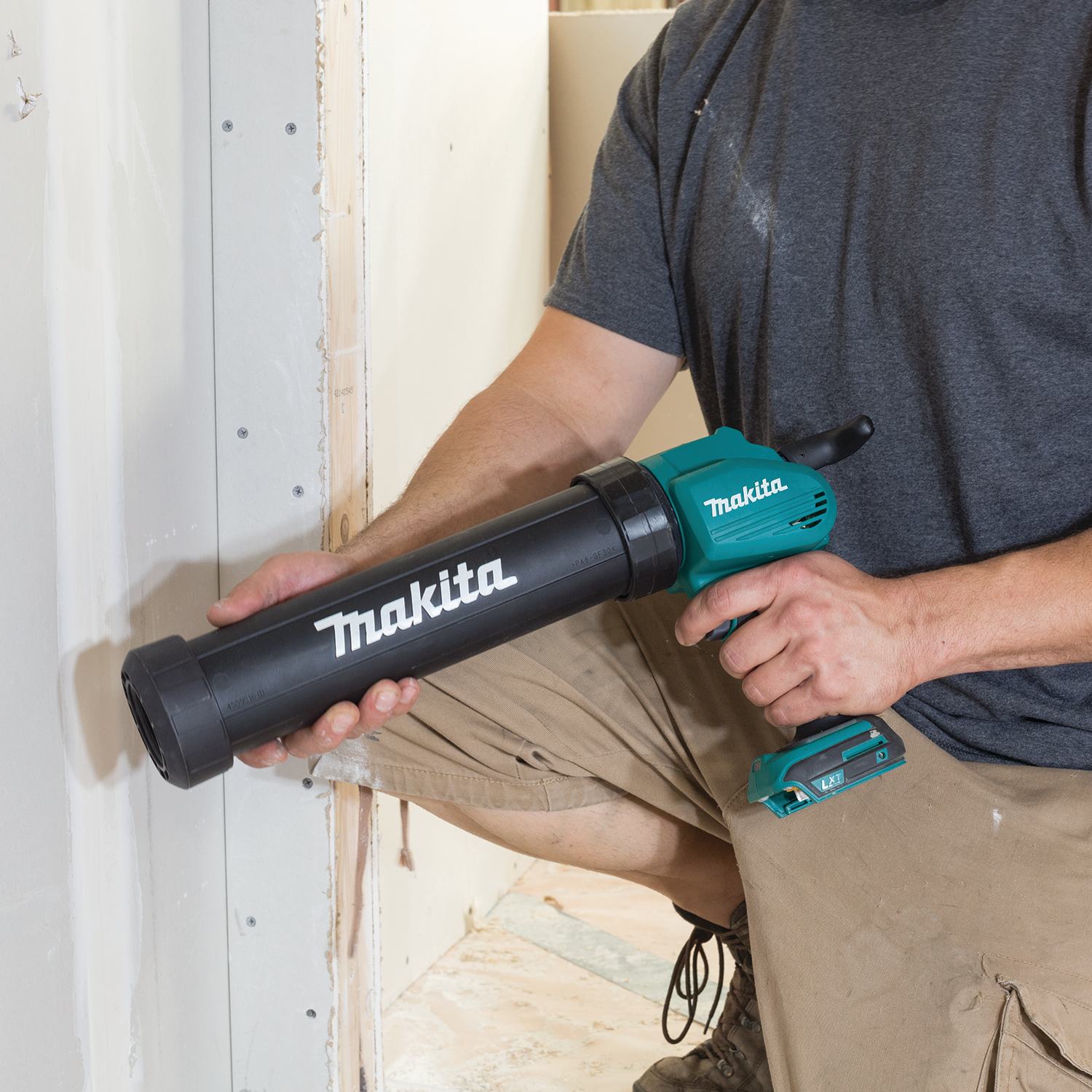 The 18V LXT® Lithium-Ion Cordless 29 oz. Caulk and Adhesive Gun (XGC01ZC, tool only) is a versatile, powerful, and lightweight solution for any contractor dispensing large amounts of caulk and adhesives, including window installers, drywall contractors, fire stop installers, commercial glazers, boat builders, and more. It’s part of Makita’s expanding 18V Lithium-Ion series, the world’s largest cordless tool line-up powered by an 18V Lithium-Ion slide-style battery. Makita 18V Lithium-Ion batteries have the fastest charge times in their categories, so they spend more time working and less time sitting on the charger. For improved tool performance and extended battery life, Makita created Star Protection Computer Controls™. Star Protection is communication technology that allows the Star Protection-equipped tool and battery to exchange data in real time and monitor conditions during use to protect against overloading, over-discharging and overheating. For increased versatility, the tool can also be powered by Makita 18V LXT® and Compact Lithium-Ion batteries with the star symbol on the battery indicating Star Protection inside. The XGC01ZC delivers 1,100 lbs. of dispensing force for even the highest viscosity adhesives and sealants. It features a 5-speed dial with 0-66 Inches Per Minute (IPM), and a variable speed trigger that allows the user to optimize the flow rate according to the application. It has a compact design at 18-7/8” with less weight (only 5.9 lbs. with 18V LXT® battery, sold separately). Convenience features include a 360° rotatable cartridge holder that fits 28-29 oz. cartridges, as well as a built-in L.E.D. light that illuminates the work area for improved visibility. The XGC01ZC also features an overload indicator light that notifies the operator when the tool is nearly overloaded to minimize breakage of the sealant cartridge.