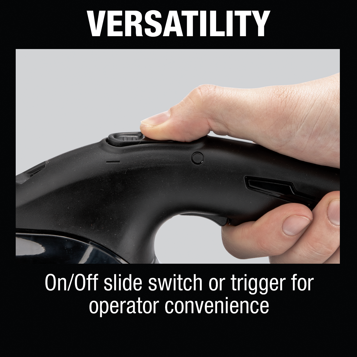 Key Features- VERSATILITY : On/Off slide switch or trigger for operator convenience