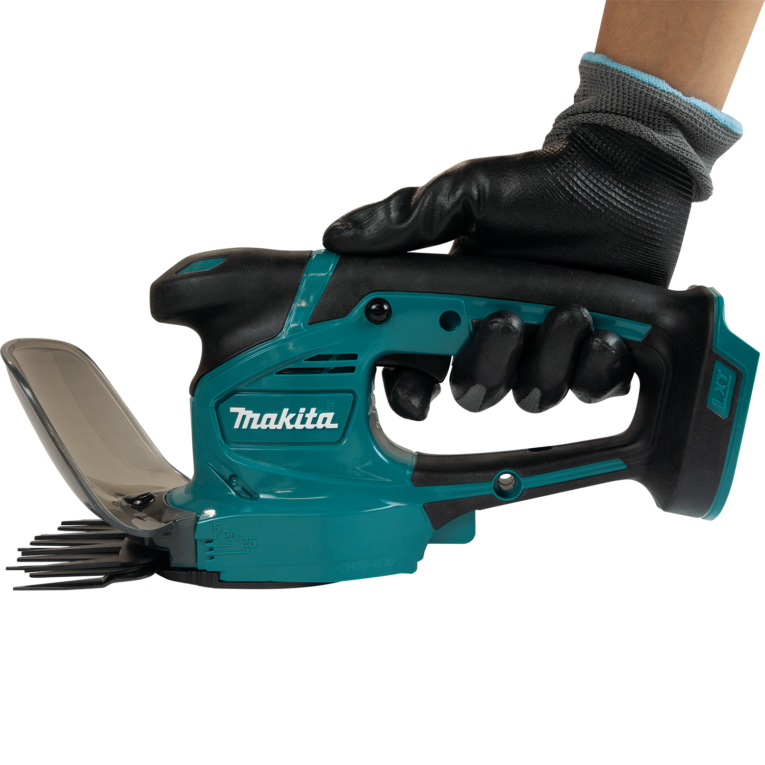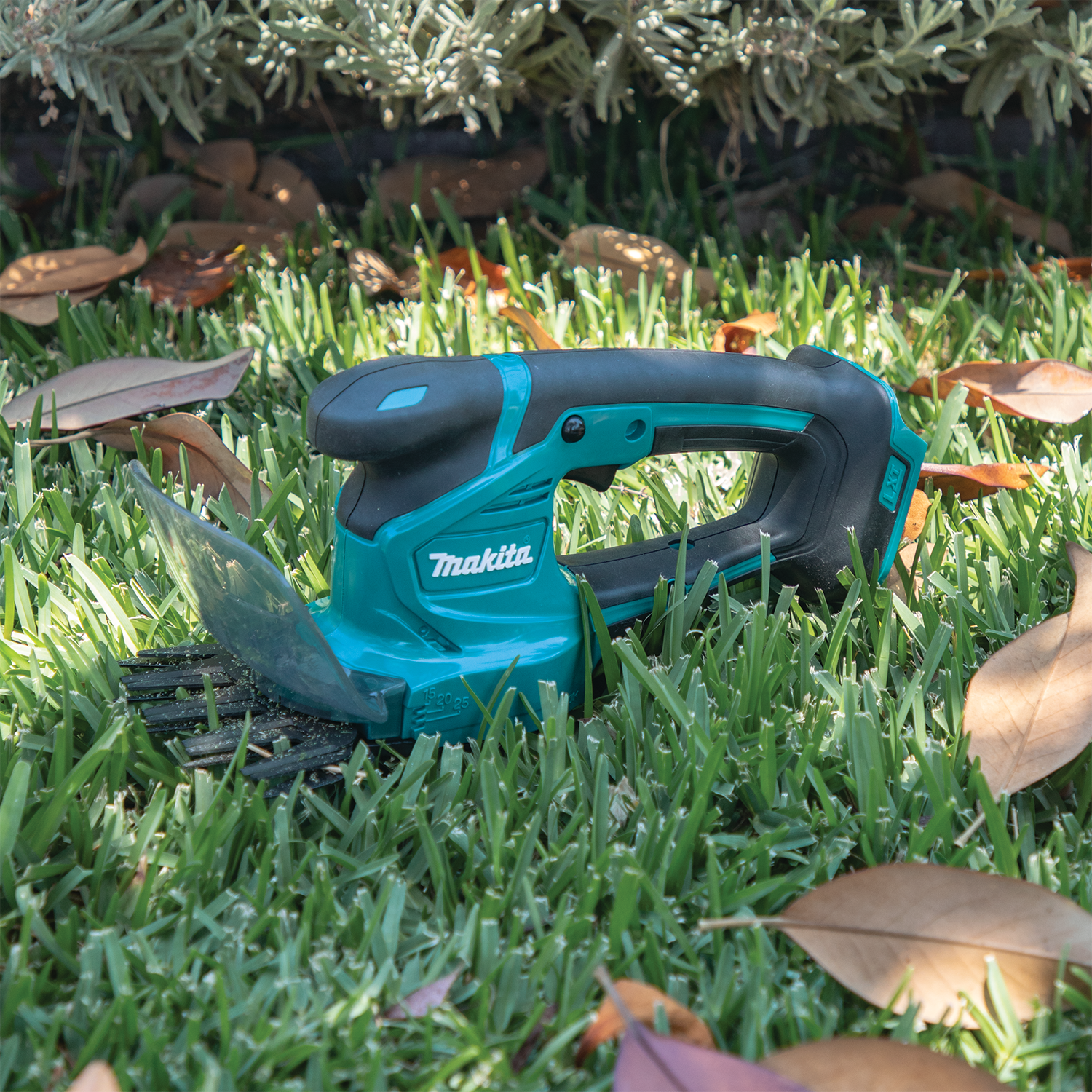 The 18V LXT® Cordless Grass Shear (XMU05Z, tool only) is a compact and cordless solution for grass trimming and cutting. The XMU05Z has dual blade action and a 4-5/16” cutting width. It delivers faster blade speed at 2,500 strokes per minute/SPM. Get up to 2 hours of run time with a fully charged 18V LXT® 5.0Ah Battery (sold separately). Additional features include a rubberized soft grip handle, tool-less blade changing, non-electrolyzed nickel-plated blades to resist staining and rusting, and a compact size.It’s part of Makita’s expanding 18V LXT System, the world’s largest cordless tool system powered by 18V lithium-ion slide-style batteries. Makita’s purpose-built motors, battery technology, and enhanced communications work together to deliver maximum performance and efficiency. The LXT System offers cordless tools, equipment, and accessories for every trade.For improved tool performance and extended battery life, Makita created Star Protection Computer Controls™. Star Protection is communication technology that allows the Star Protection-equipped tool and battery to exchange data in real time and monitor conditions during use to protect against overloading, over-discharging and overheating. For increased versatility, the tool can also be powered by Makita® 18V LXT® Lithium-Ion Batteries with the star symbol on the battery indicating Star Protection inside.