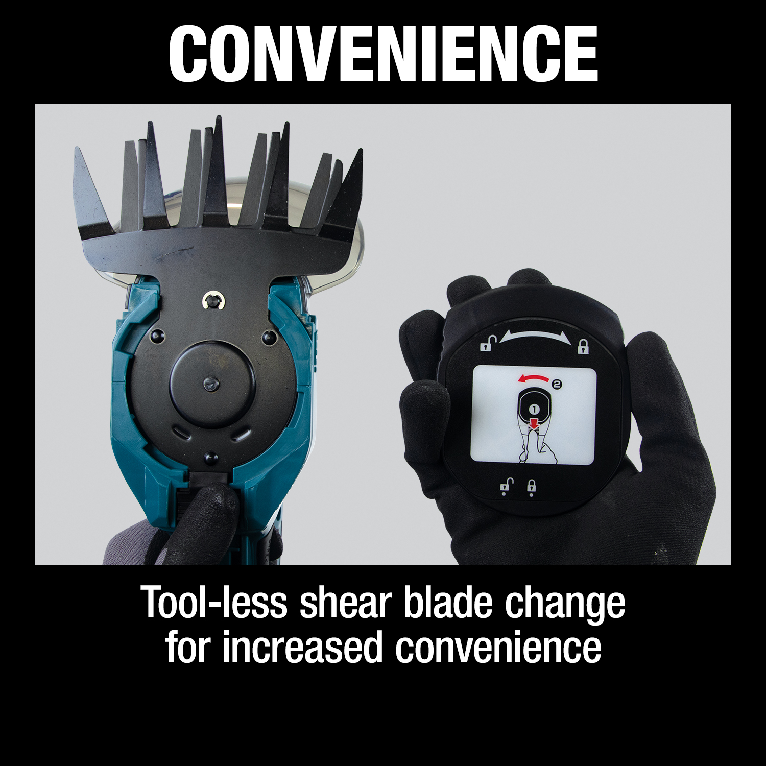- CONVENIENCE : Tool-less shear blade change for increased convenience