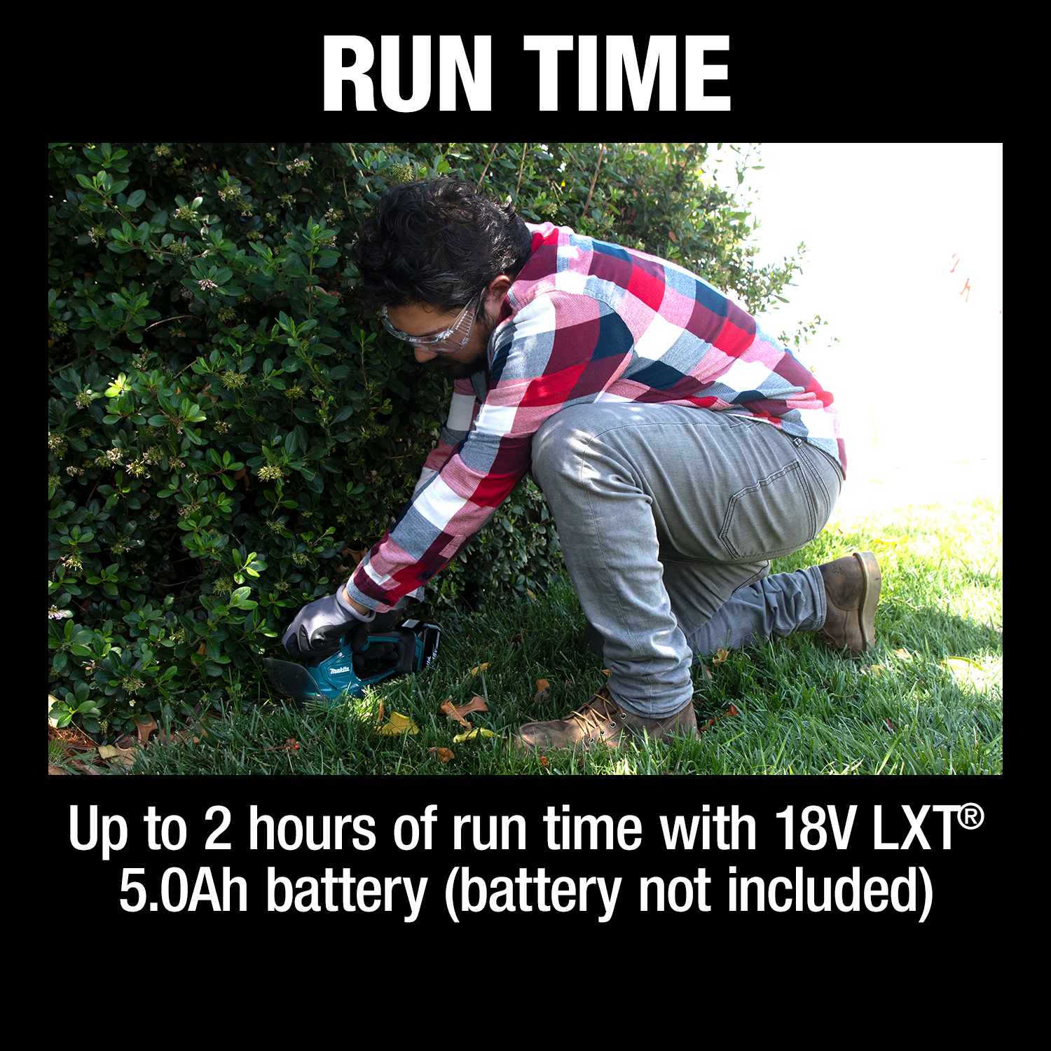 - RUN TIME : Up to 2 hours of run time with 18V LXT® 5.0Ah battery (battery not included)