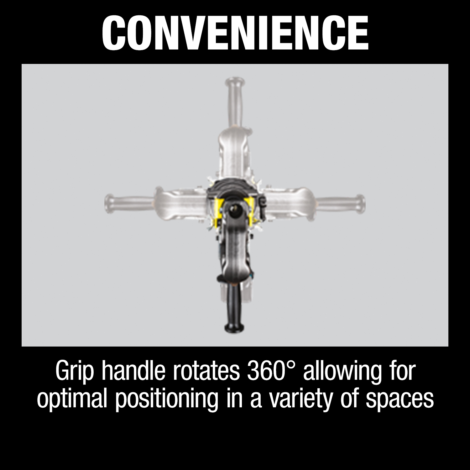 - CONVENIENCE : Grip handle rotates 360° allowing for optimal positioning in a variety of spaces