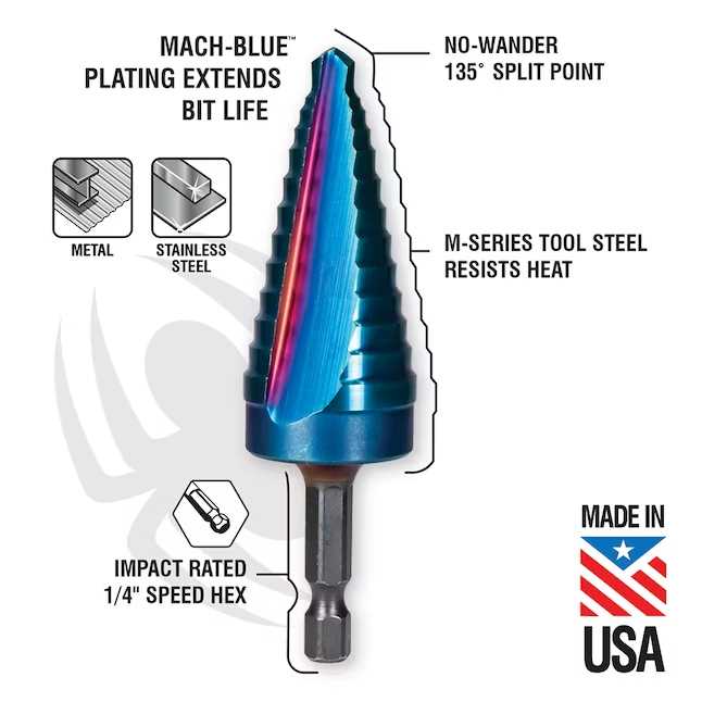 Spyder 19024 Mach-Blue 1/4-in 10-Step Drill Bit (1/4-in to 1-3/8-in)