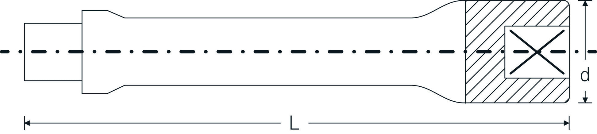 - Praktische Verlängerung für handbetätigte Steckschlüsseleinsätze mit 1/2" Vierkantantrieb und Kugelarretierung.