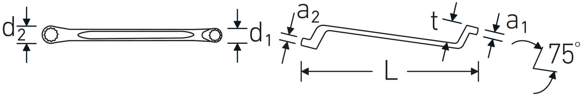 - High quality double-ended ring spanner, deeply cranked, with metric spanner sizes.