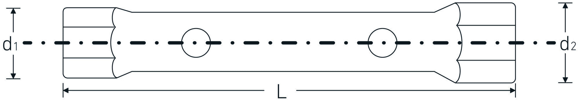 - The extended shape of the pipe double socket spanner serves as a practical handle and can therefore be used ideally even in narrow, space-limited work spaces.