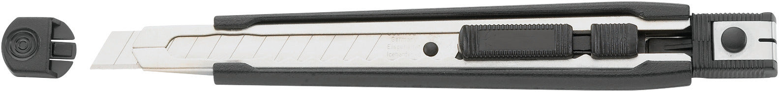 - With three 9 mm snap-off blades (one blade mounted, two blades in magazine).